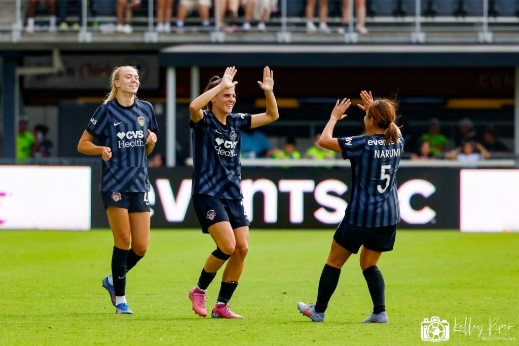 Then the Spirit were able to tack on the 4th goal when the ball came from Croix Bethune to Narumi Miura in the box. Narumi sent the ball back toward Sofia Cantore, who was able to back heel the ball past Smith for the final goal of the game.